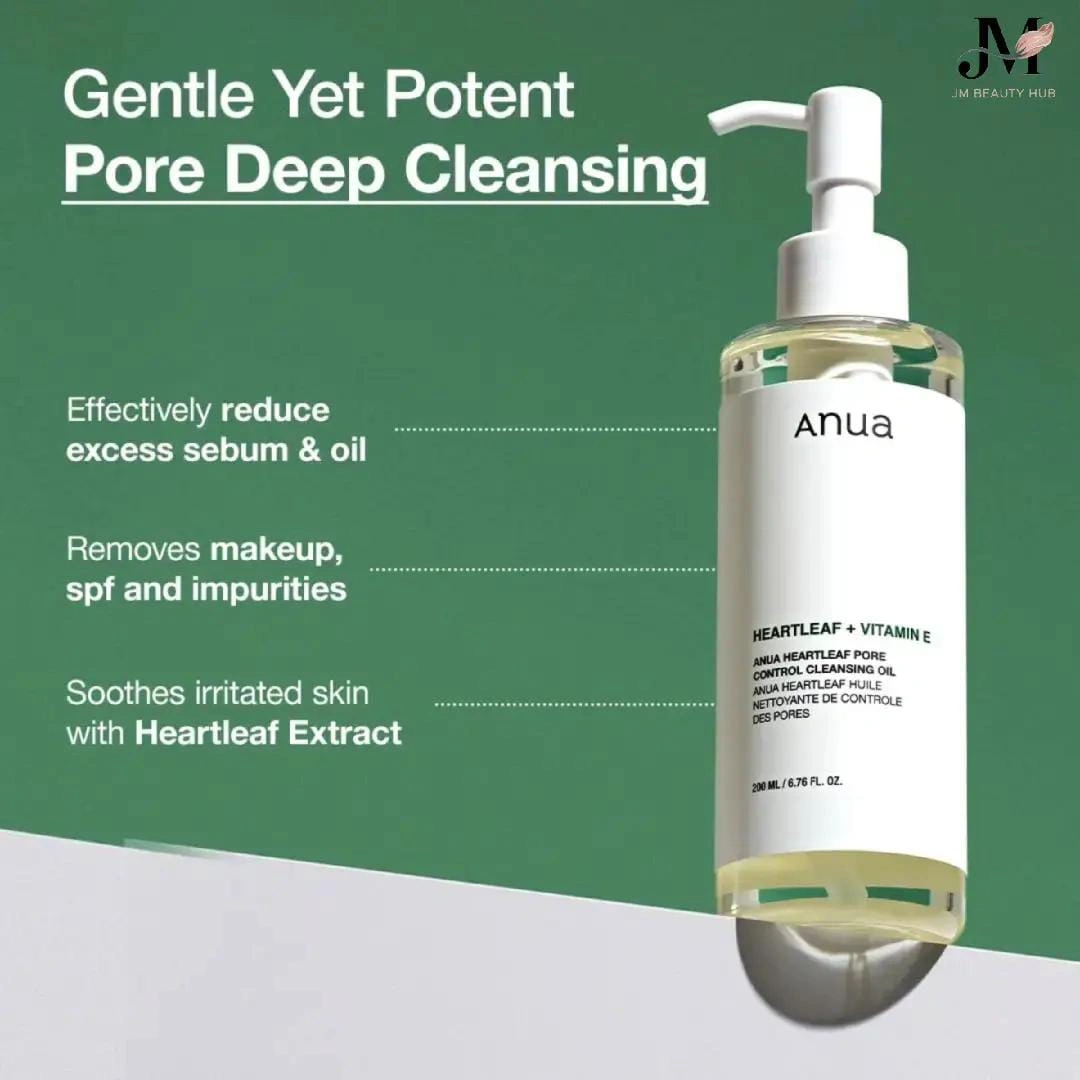 Experience deep cleansing and skin nourishment with Anua Heartleaf + Vitamin E Pore Control Cleansing Oil — your go-to solution for clean, calm, and healthy-looking skin.