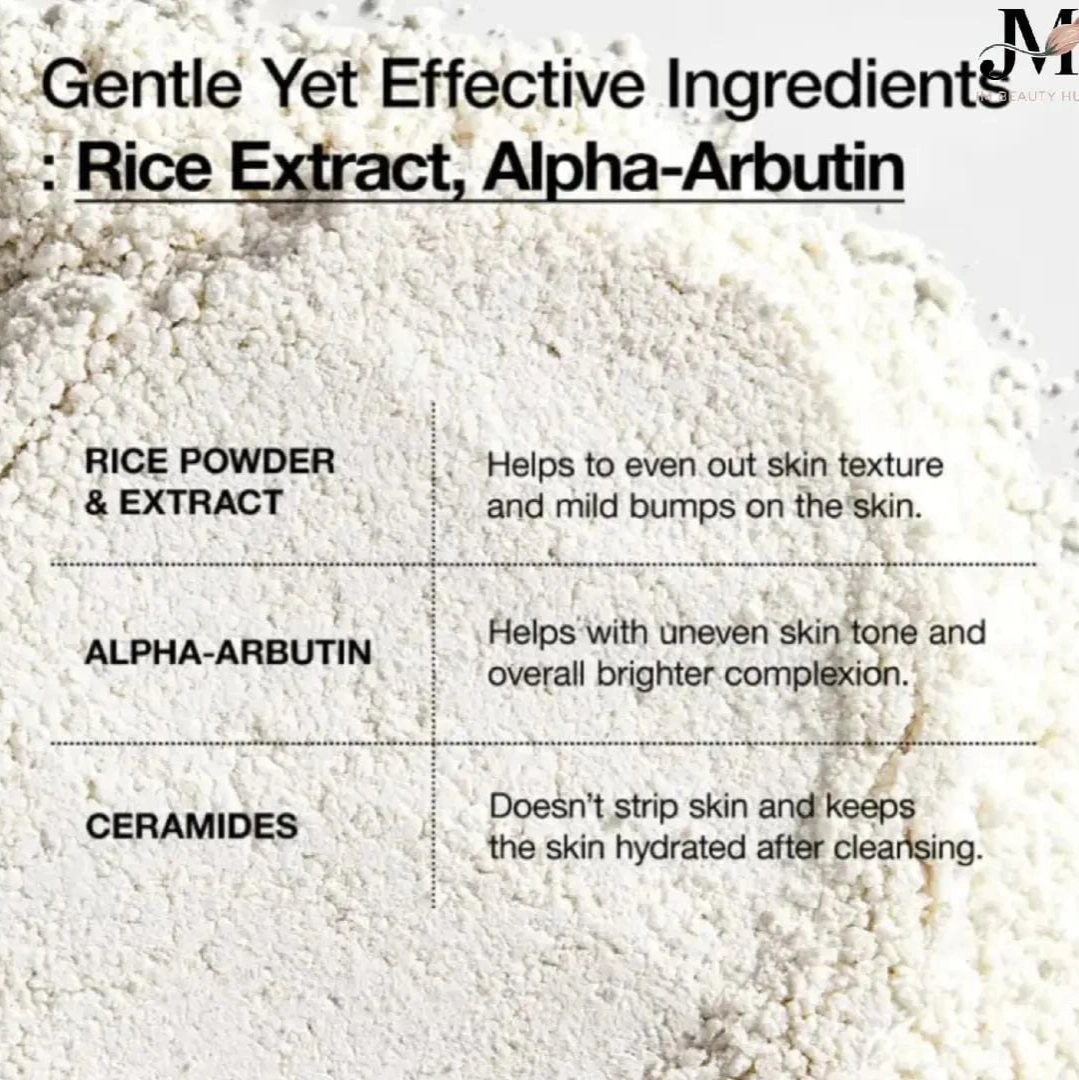 A gentle exfoliating cleansing powder infused with rice enzymes and ceramide that helps remove impurities, dead skin cells, and excess sebum while brightening and strengthening the skin barrier. Suitable for all skin types, especially sensitive and dull skin.