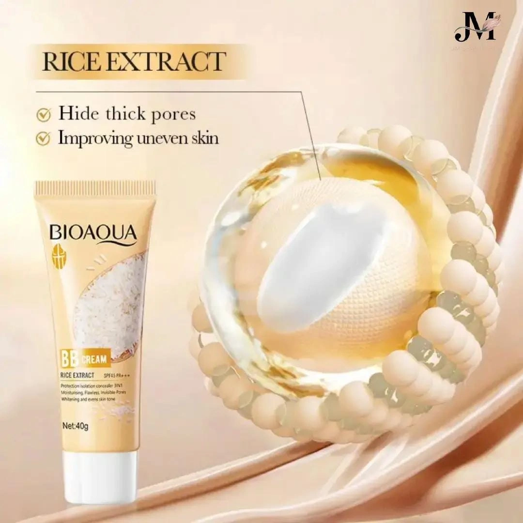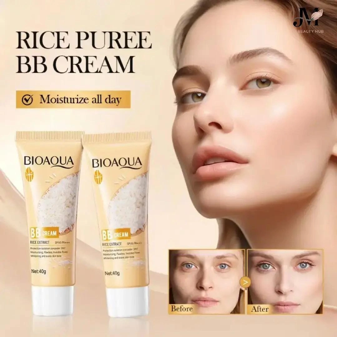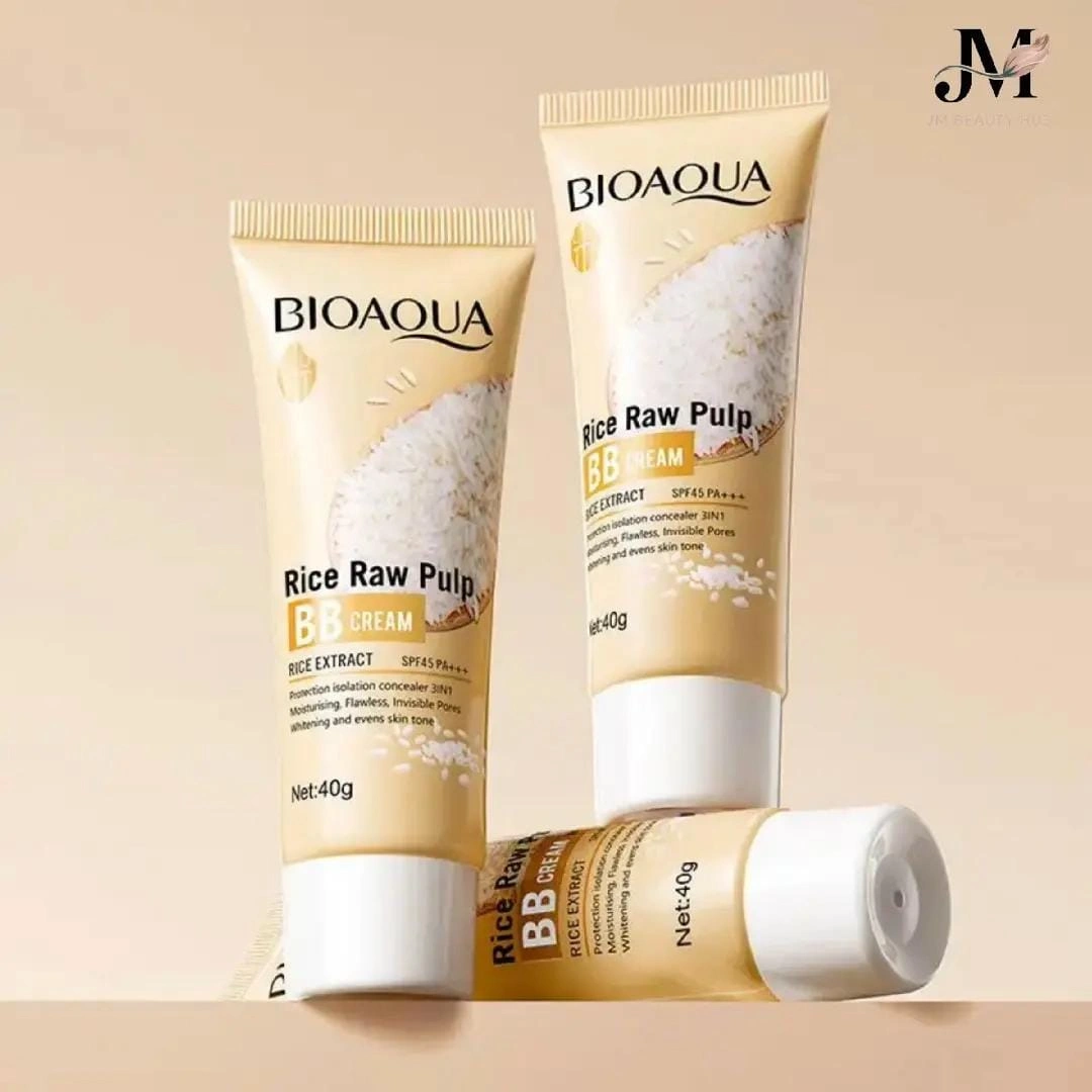 Achieve flawless, radiant skin with BIOAQUA Rice Raw Pulp BB Cream. Infused with rice extract, this 3-in-1 formula works as a concealer, brightener, and sun protector, providing even skin tone and a smooth, natural finish. Perfect for daily use to cover imperfections and reveal luminous, healthy-looking skin.