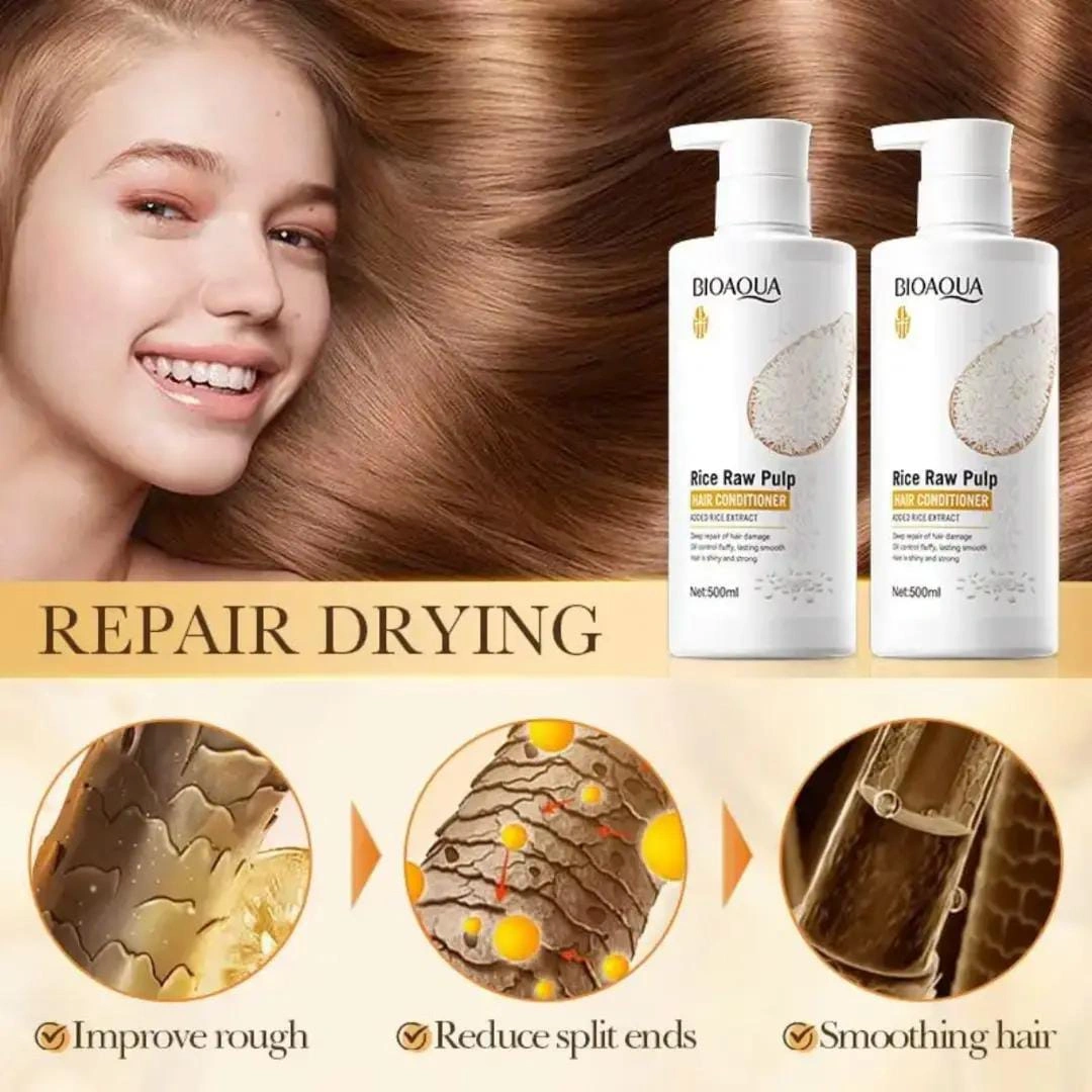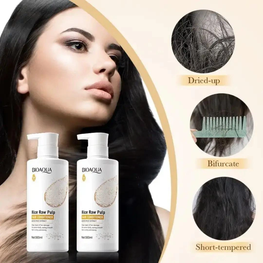 Experience the power of rice extract with BIOAQUA Rice Raw Pulp Hair Conditioner, a revitalizing formula that brings life back to dull and damaged hair. Enriched with natural rice essence, this conditioner penetrates deeply to repair split ends, replenish lost moisture, and improve hair texture.