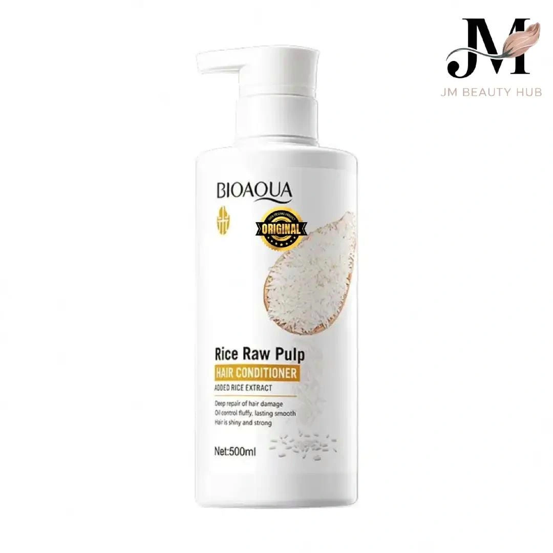 BIOAQUA Rice Raw Pulp Hair Conditioner (500ml) is a nourishing hair treatment infused with natural rice extract. Designed to deeply repair damaged hair, control excess oil, and restore silky smoothness, it helps make your hair healthier, shinier, and stronger with every use.