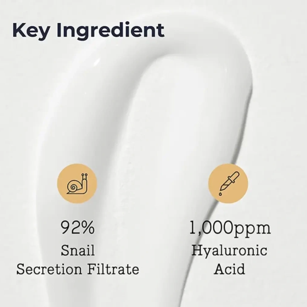 Contains 92% snail mucin for intense hydration and skin repair.