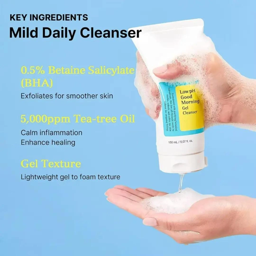 Start your day with Cosrx Low pH Good Morning Gel Cleanser, a mild yet effective cleanser designed to keep your skin healthy and balanced. Formulated with tea tree oil and natural botanical ingredients, this gel cleanser works to remove excess oil, impurities, and overnight build-up while maintaining your skin’s optimal pH level of 5.0–6.0 — ideal for preventing irritation and dryness.