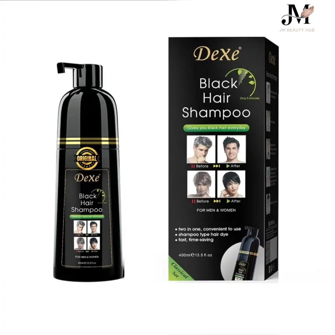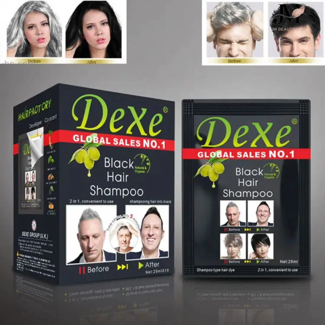 Dexe Black Hair Shampoo is a quick-action 2-in-1 shampoo and hair-color formula that instantly turns grey or white hair into natural-looking black in just 5 minutes. Designed for both men and women, it cleanses the scalp while giving long-lasting black color, leaving hair shiny, smooth, and refreshed.