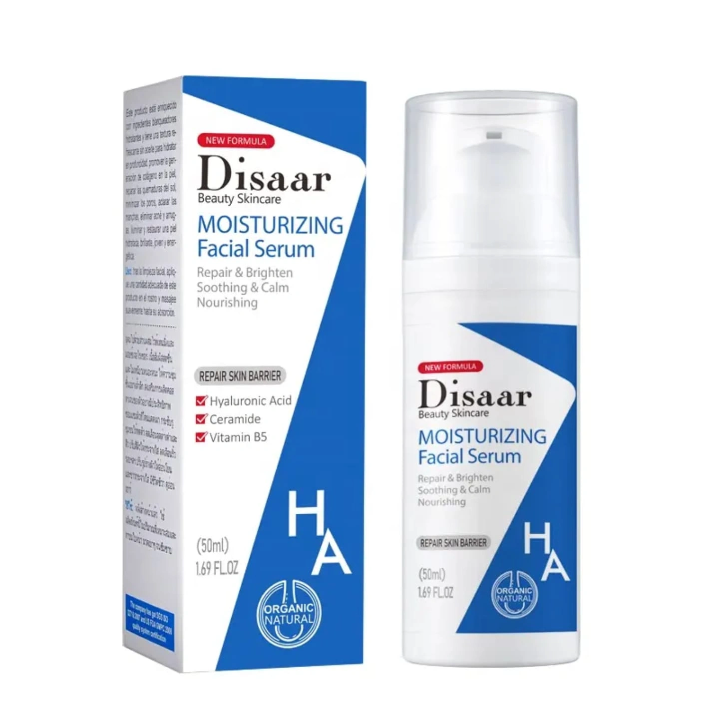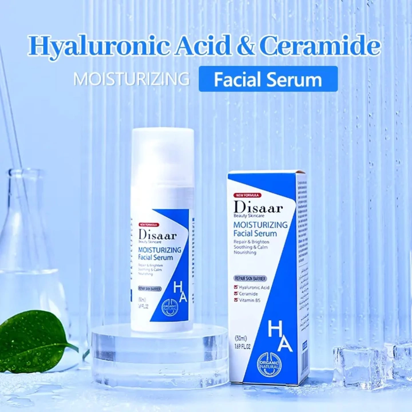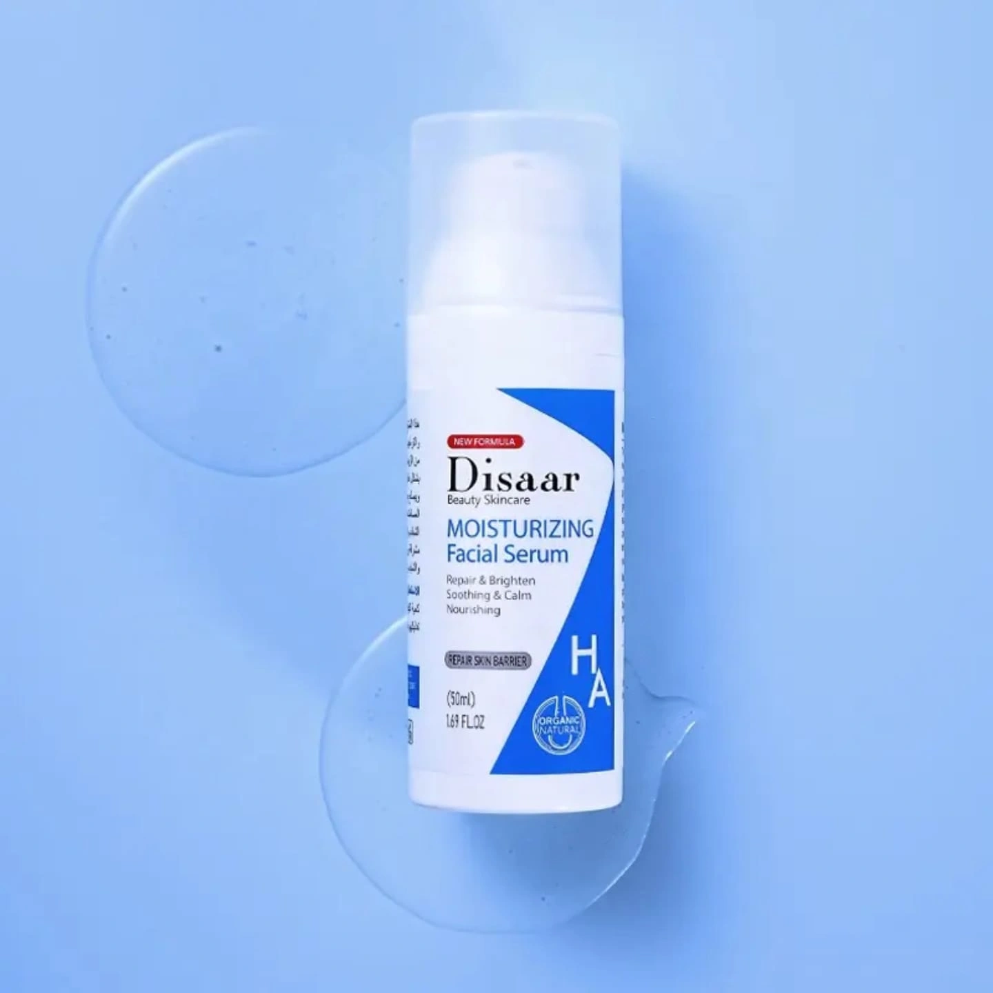 Disaar Beauty Skincare Moisturizing Facial Serum is a hydrating formula enriched with Hyaluronic Acid, Ceramide, and Vitamin B5 to deeply moisturize, repair the skin barrier, and improve overall skin texture. Designed to soothe, brighten, and nourish the skin, this serum delivers intense hydration and long-lasting softness. Suitable for all skin types, including dry and sensitive skin.