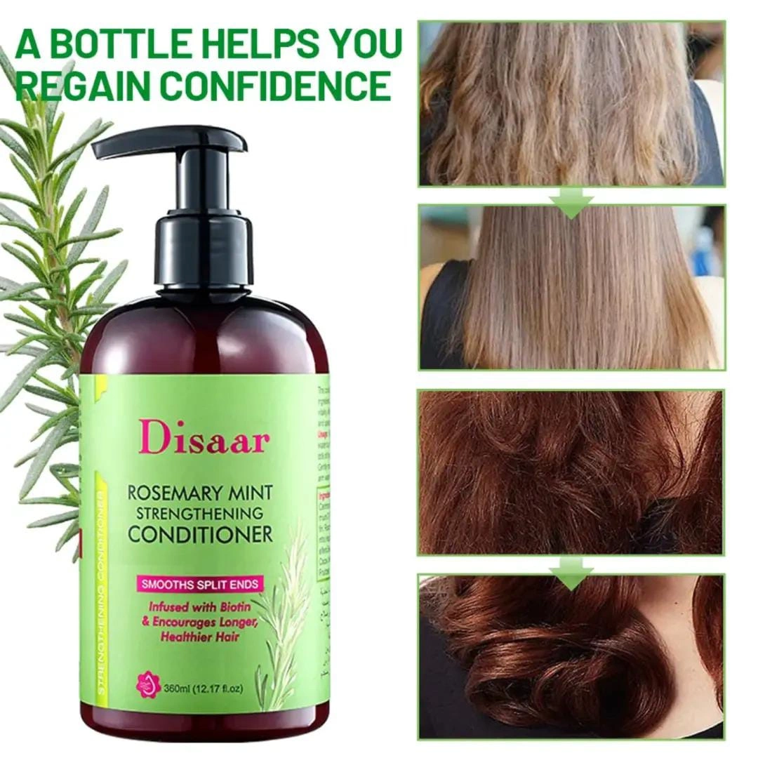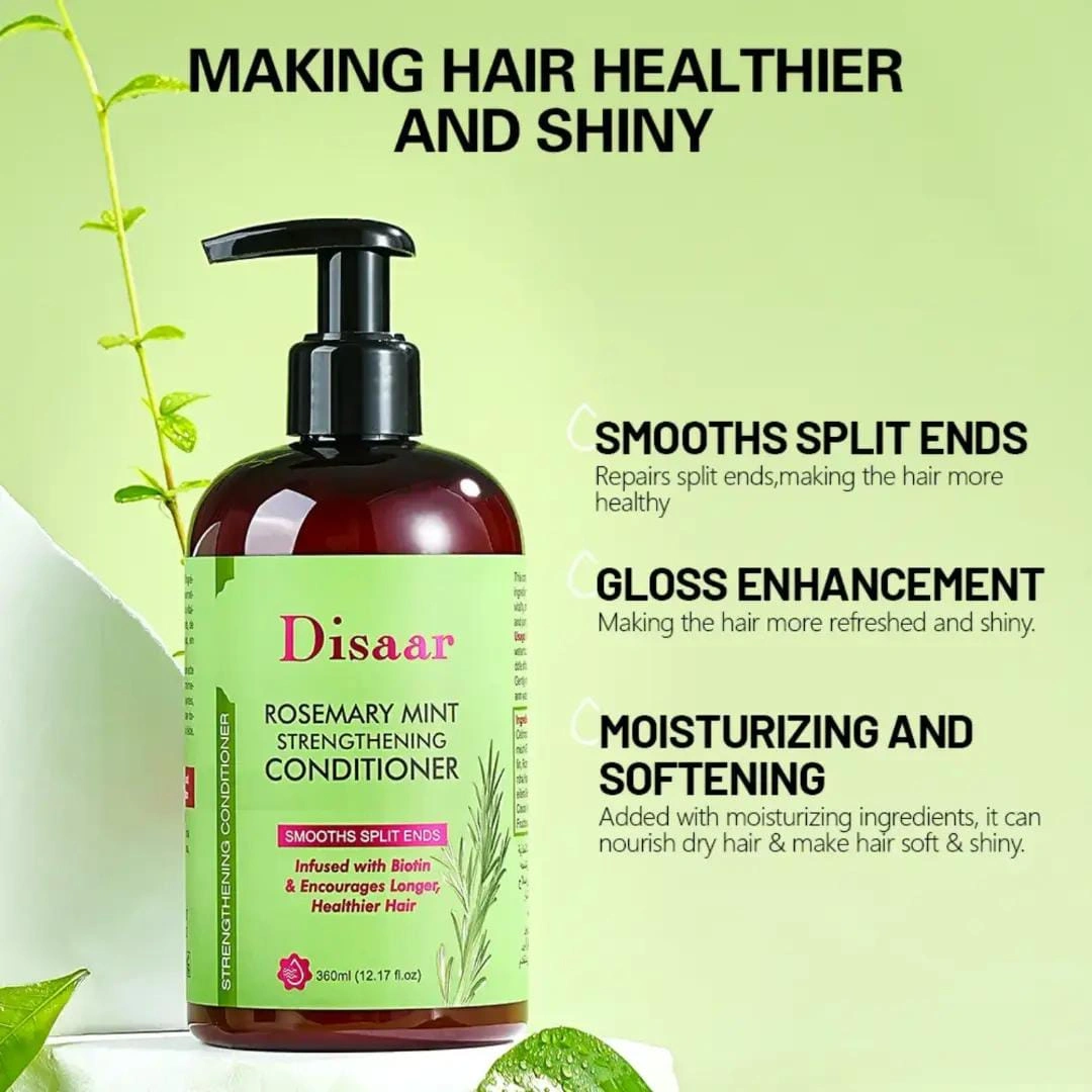 Experience the revitalizing power of Disaar Rosemary Mint Strengthening Conditioner, expertly formulated to nurture and reinforce your hair from root to tip. Enriched with rosemary extract, known for its stimulating properties, and mint, which refreshes and soothes the scalp, this conditioner promotes stronger, longer, and healthier hair growth.