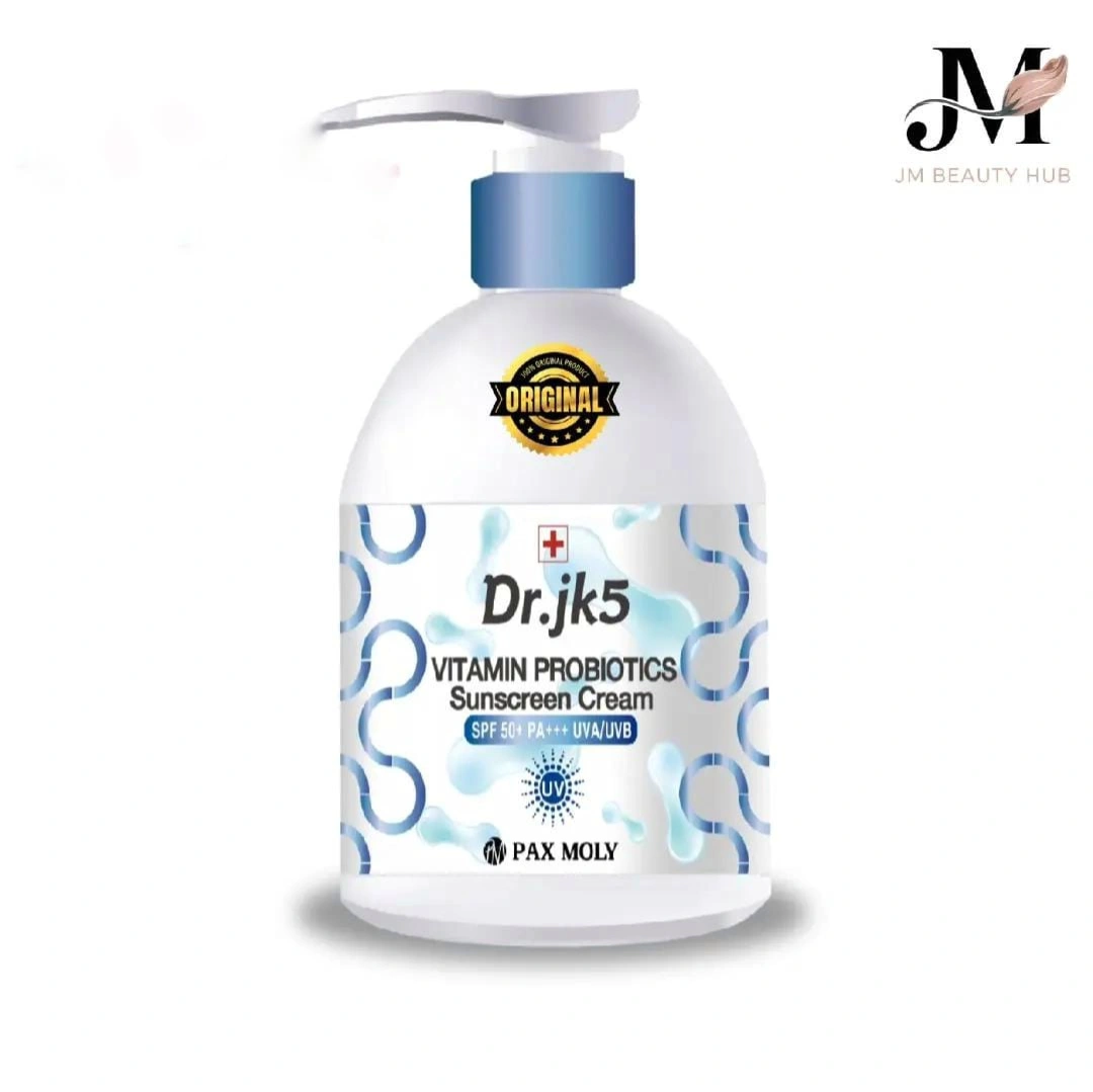 Protect, nourish, and revitalize your skin with Dr. jk5 Vitamin Probiotics Sunscreen Cream, a premium skincare formula from Pax Moly. This innovative sunscreen combines broad-spectrum SPF 50+ PA+++ protection with the power of vitamins and probiotics to deliver comprehensive care for your skin.