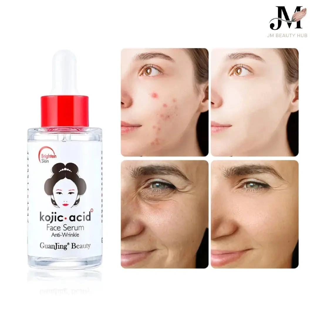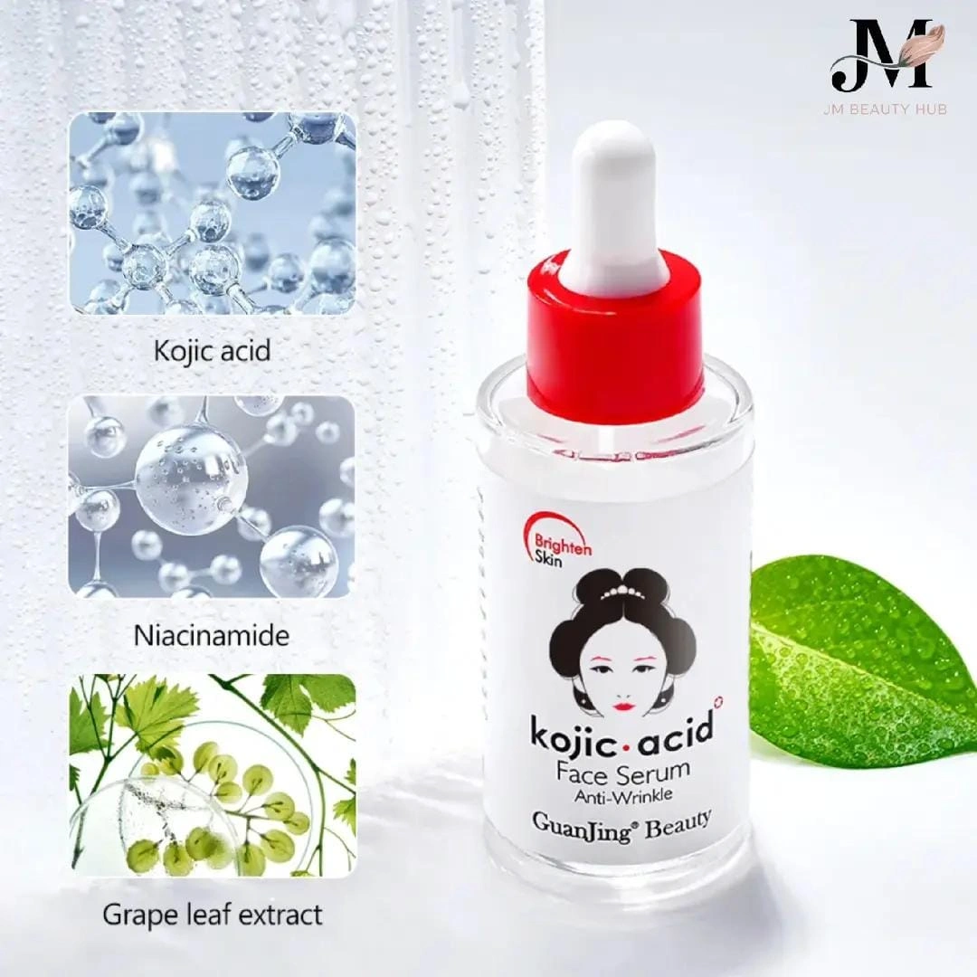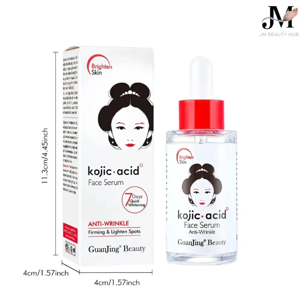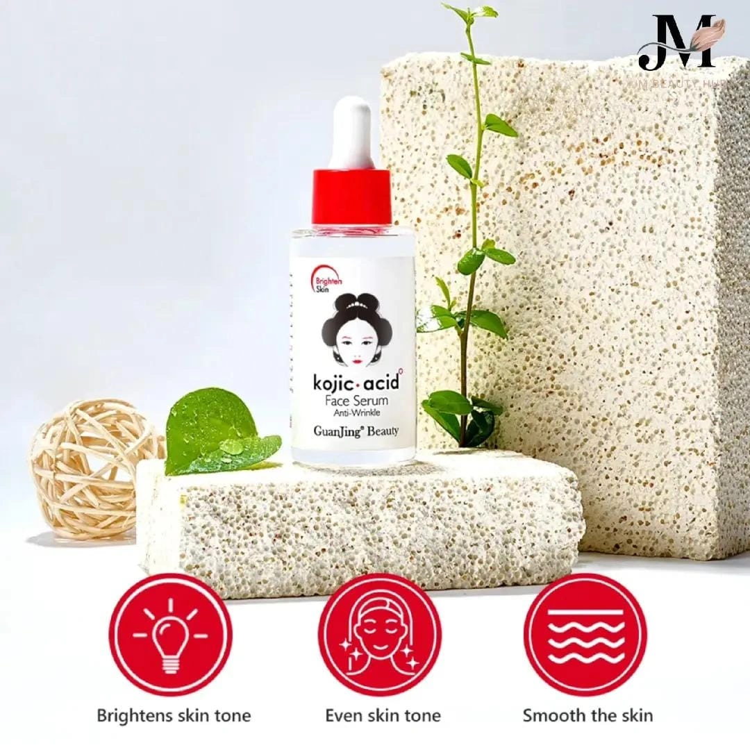 GuanJing Beauty Kojic Acid Face Serum is a powerful skin-brightening formula designed to reduce dark spots, acne scars, and uneven skin tone. Enriched with Kojic Acid and active natural ingredients, this serum helps to lighten pigmentation while promoting a smooth, radiant complexion. It also targets fine lines and wrinkles, giving your skin a firmer and more youthful look.