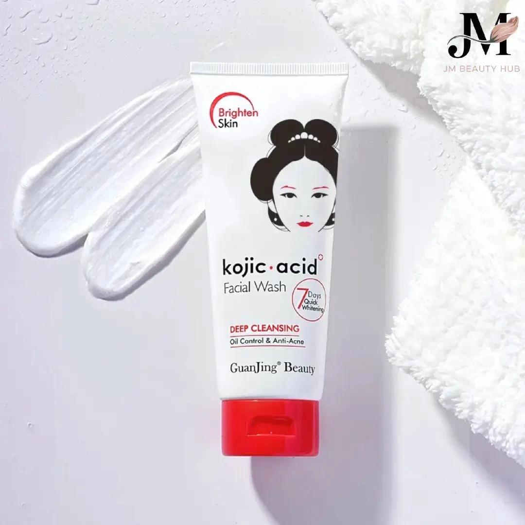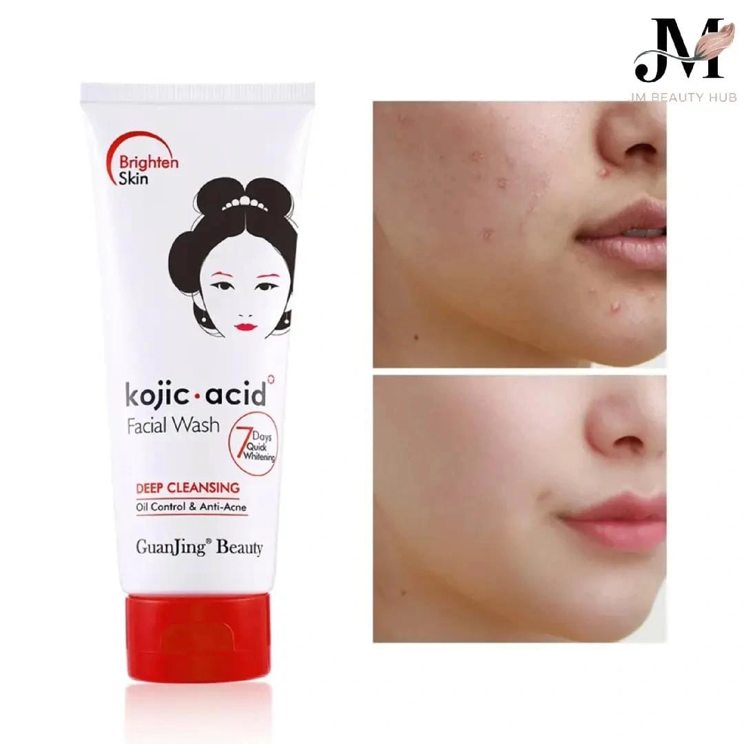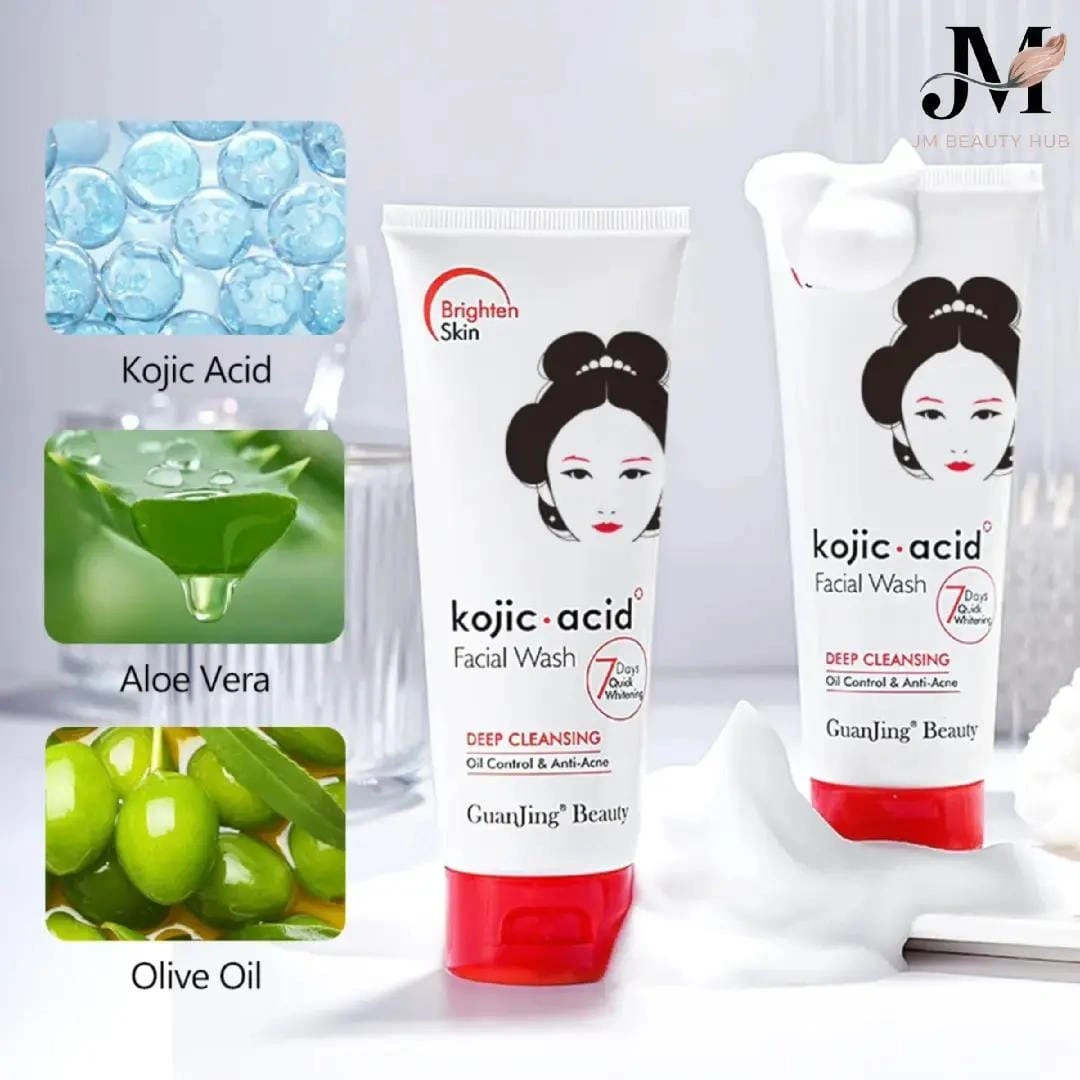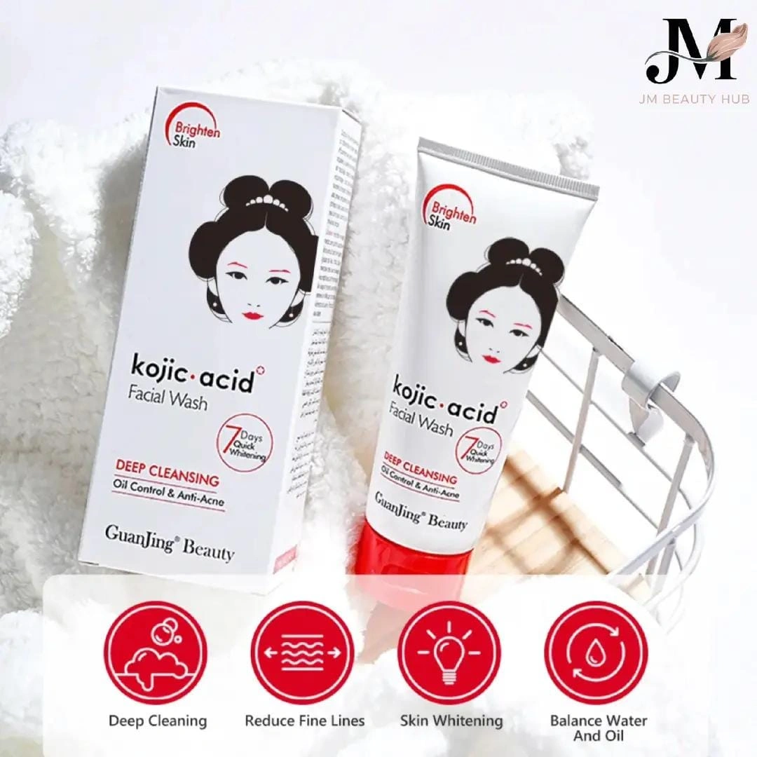 Experience visibly brighter and clearer skin with GuanJing Beauty Kojic Acid Facial Wash — your go-to solution for a deep and refreshing cleanse. Enriched with Kojic Acid, a well-known brightening agent, this facial wash helps fade dark spots, acne scars, and pigmentation for a more luminous complexion.