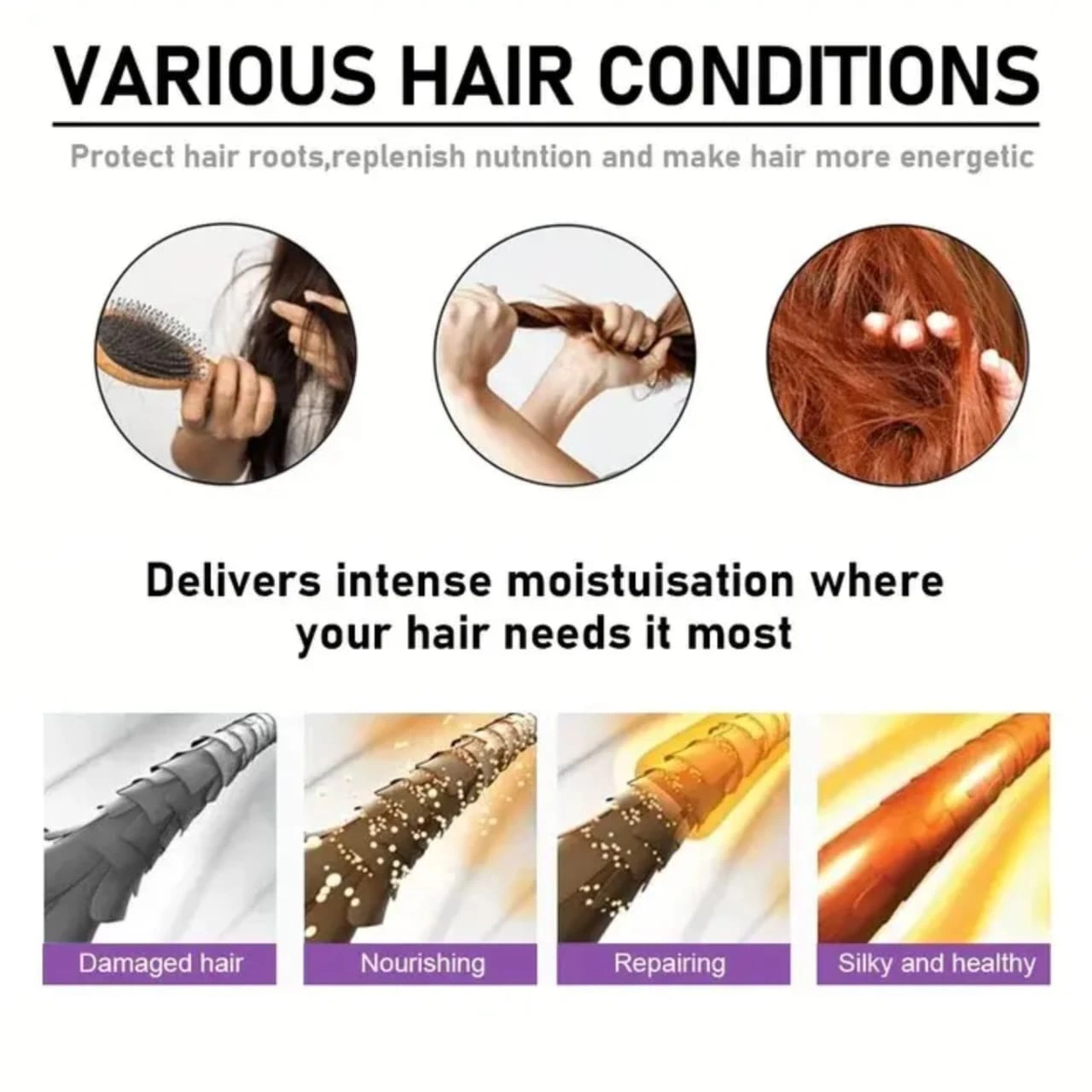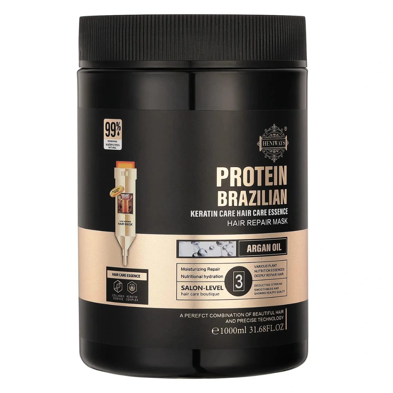 Transform your hair with the HENWAYS Protein Brazilian Keratin Care Hair Essence Repair Mask, a premium, salon-quality treatment formulated for deep repair and intense nourishment. Infused with powerful ingredients such as Brazilian protein, keratin, and pure argan oil, this mask delivers exceptional care for dry, frizzy, chemically treated, and damaged hair.