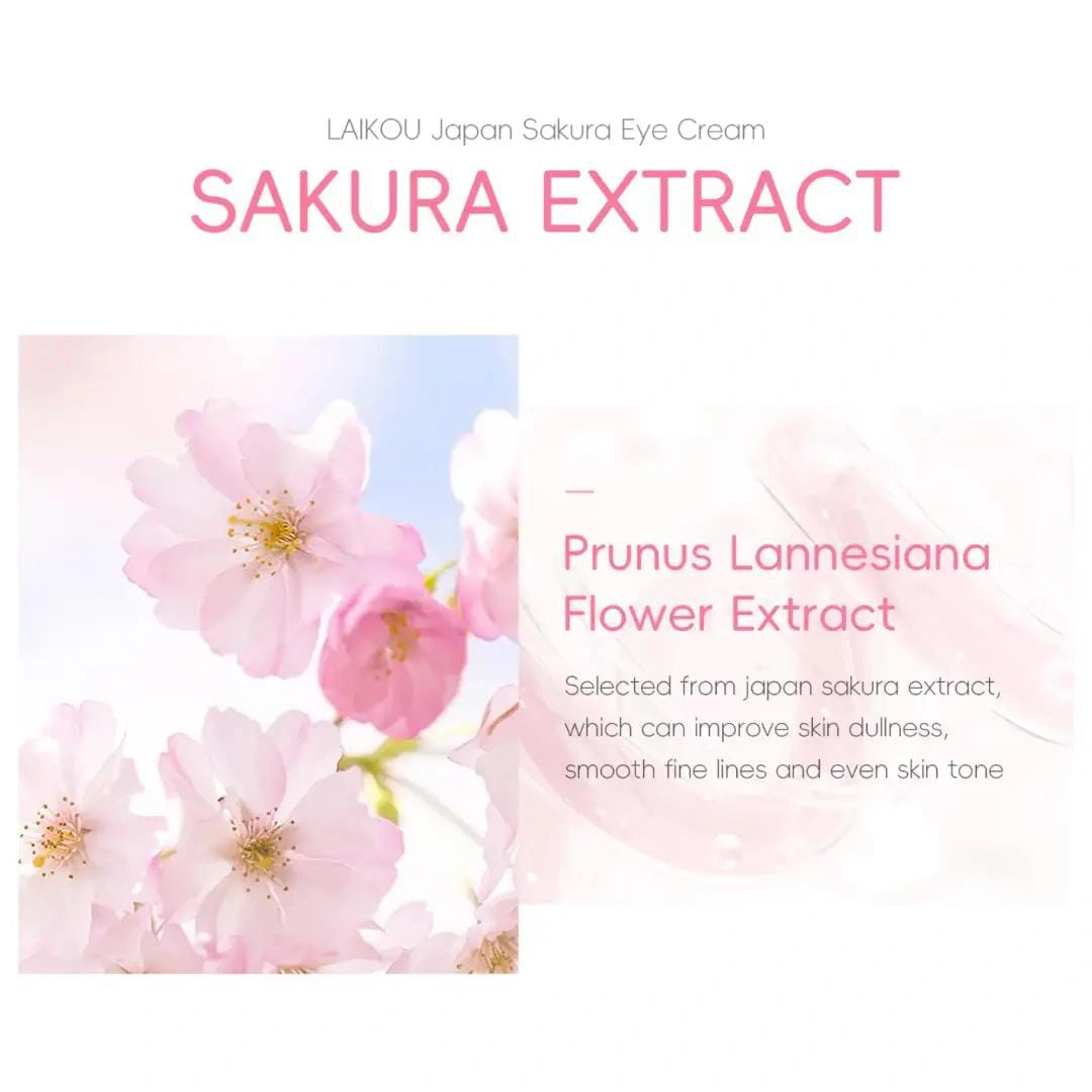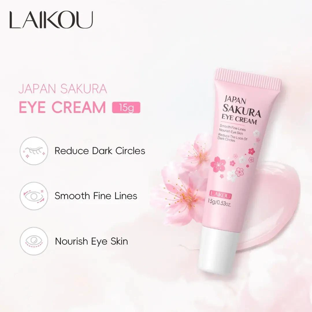 Experience the gentle touch of Japanese Sakura with the LAIKOU Japan Sakura Eye Cream, specially formulated to care for the sensitive skin around your eyes. Infused with natural Sakura extract, this cream delivers deep hydration while improving skin elasticity and radiance. Its silky, fast-absorbing texture penetrates quickly to smooth fine lines and diminish puffiness, leaving your under-eye area soft, bright, and revitalized.