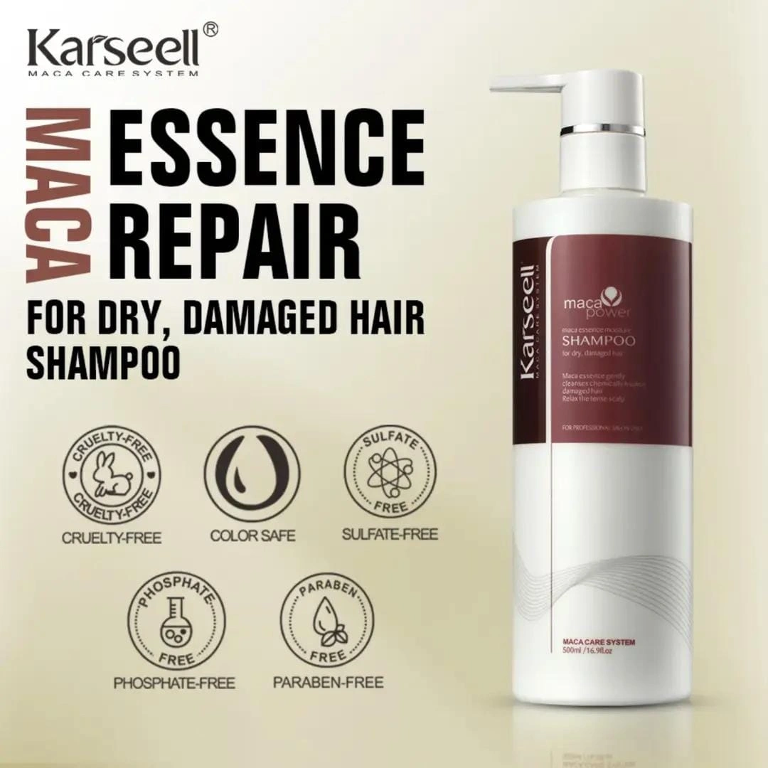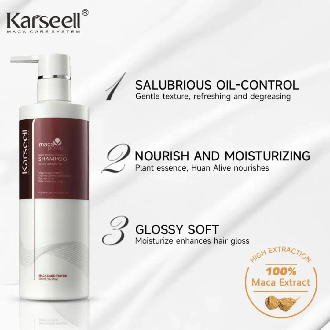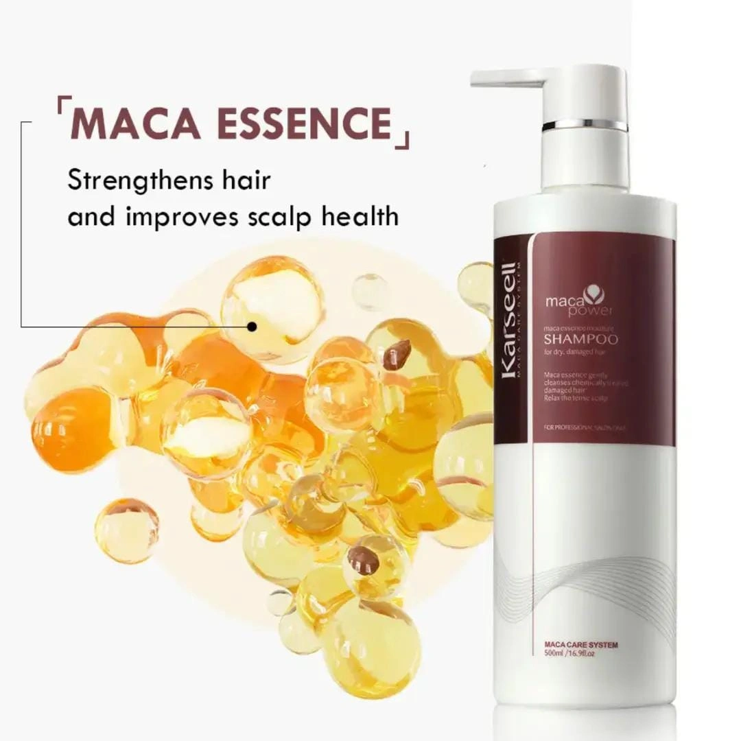 Karseell Maca Essence Moisture Shampoo is a premium hair care product formulated with the powerful essence of Peruvian Maca root, known for its exceptional nourishing and rejuvenating properties. Enriched with essential vitamins, amino acids, and plant-based proteins, this shampoo gently cleanses the scalp while restoring the natural moisture balance of your hair.