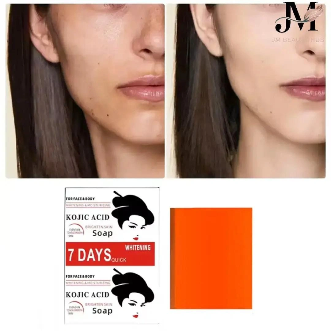 Kojic Acid Soap is a premium whitening and moisturizing soap formulated to brighten and even out skin tone. Ideal for both face and body, it helps fade dark spots, acne scars, and pigmentation, leaving your skin visibly fairer and smoother in just 7 days.