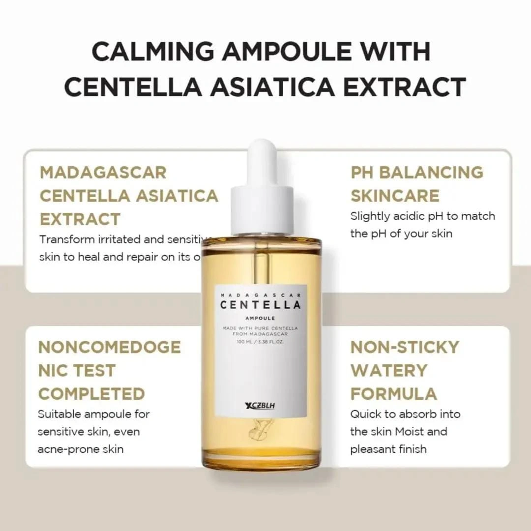 The Madagascar Centella Ampoule is a premium skincare solution formulated with 100% pure Centella Asiatica extract sourced directly from the pristine landscapes of Madagascar. Known as “Cica,” Centella Asiatica has been celebrated for centuries for its powerful soothing, healing, and anti-inflammatory properties.
