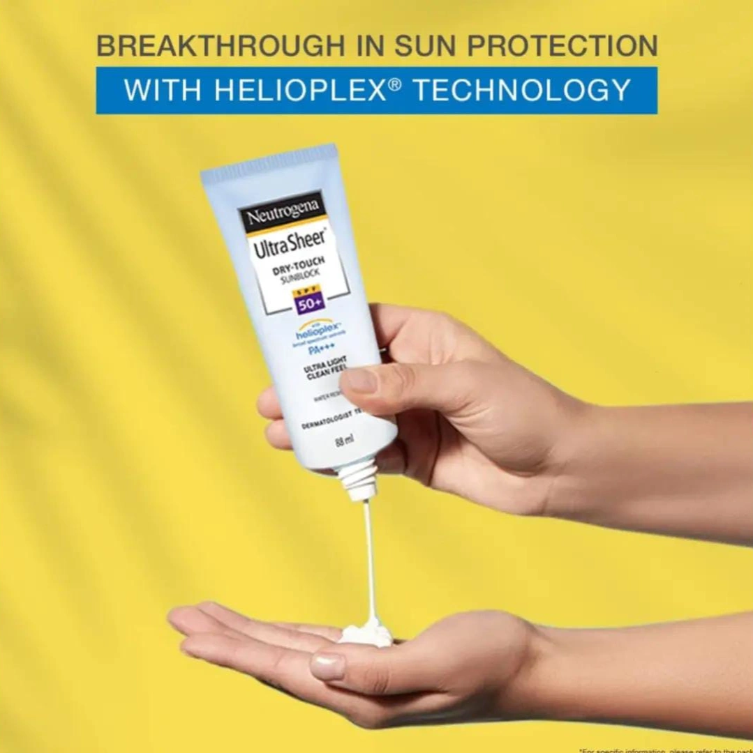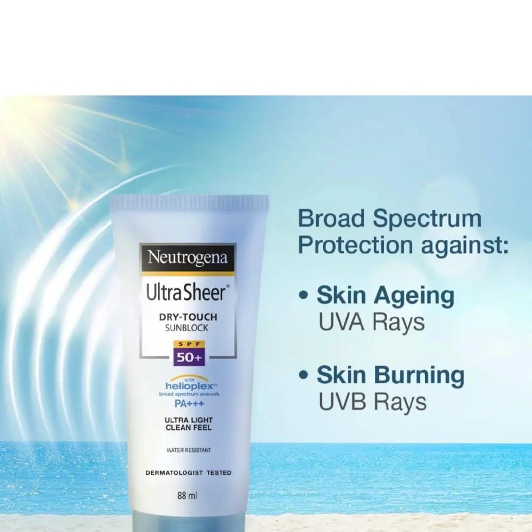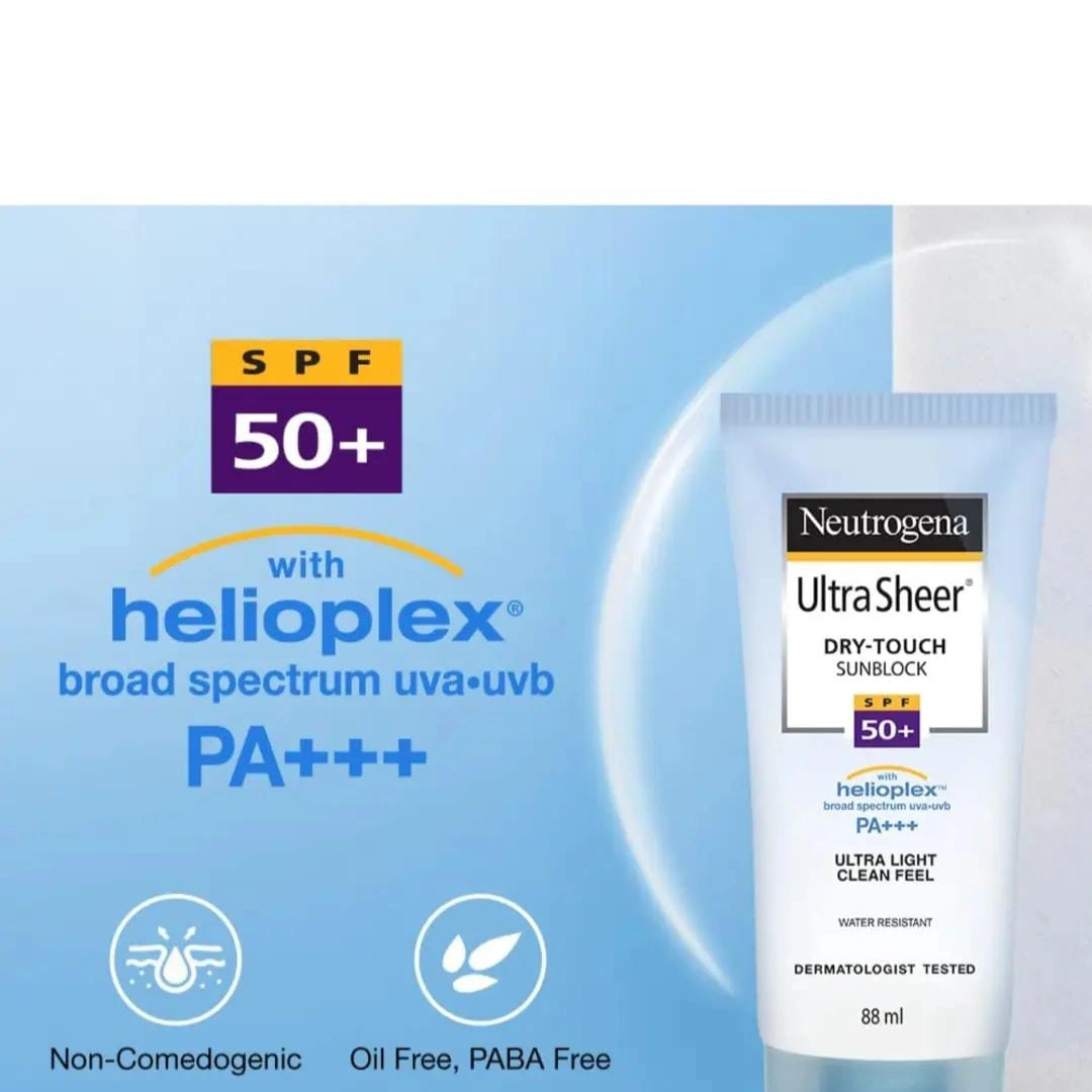 Neutrogena Ultra Sheer Dry-Touch Sunblock SPF 50+ PA+++ is a high-performance sunscreen designed to deliver powerful sun protection without compromising comfort. Powered by Helioplex® Technology, it offers broad-spectrum UVA and UVB protection that helps prevent sunburn, premature aging, and skin damage caused by daily sun exposure.