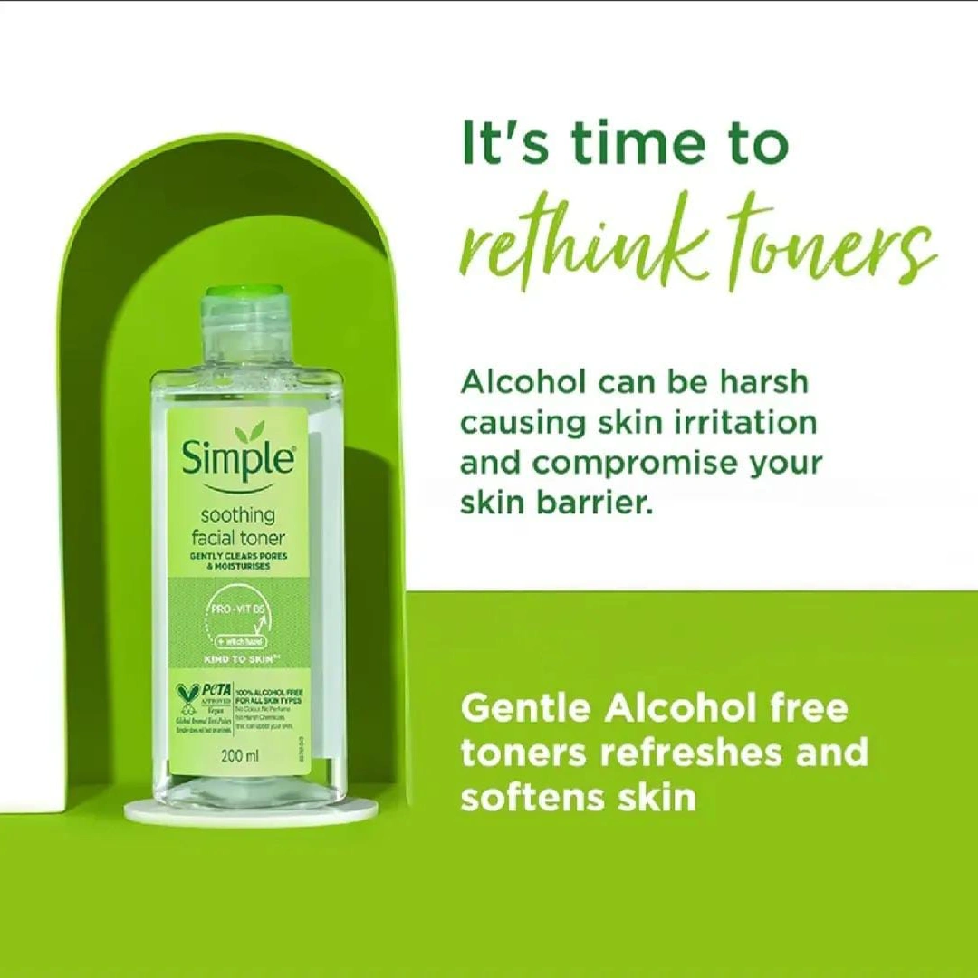 Approved by PETA and vegan-friendly, Simple Soothing Facial Toner aligns with a cruelty-free beauty routine. Its clean formula is free from harsh chemicals that can upset your skin, making it ideal for all skin types—especially sensitive or easily irritated skin.