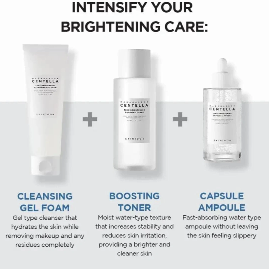 SKIN1004 Madagascar Centella Tone Brightening Capsule Ampoule is a lightweight yet powerful brightening serum infused with pure Centella Asiatica extract from Madagascar. This ampoule helps soothe sensitive skin while improving dullness and uneven skin tone for a radiant, healthy glow.